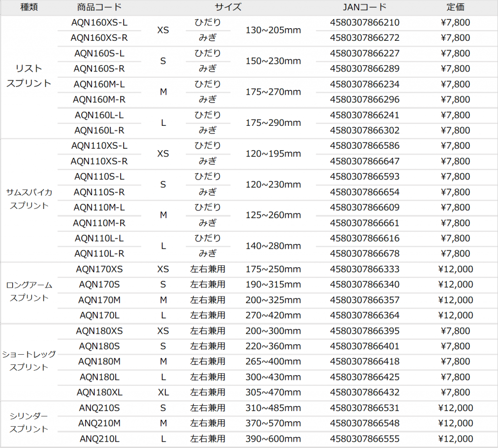 1.リストスプリント (XS~L、ひだり・みぎ)